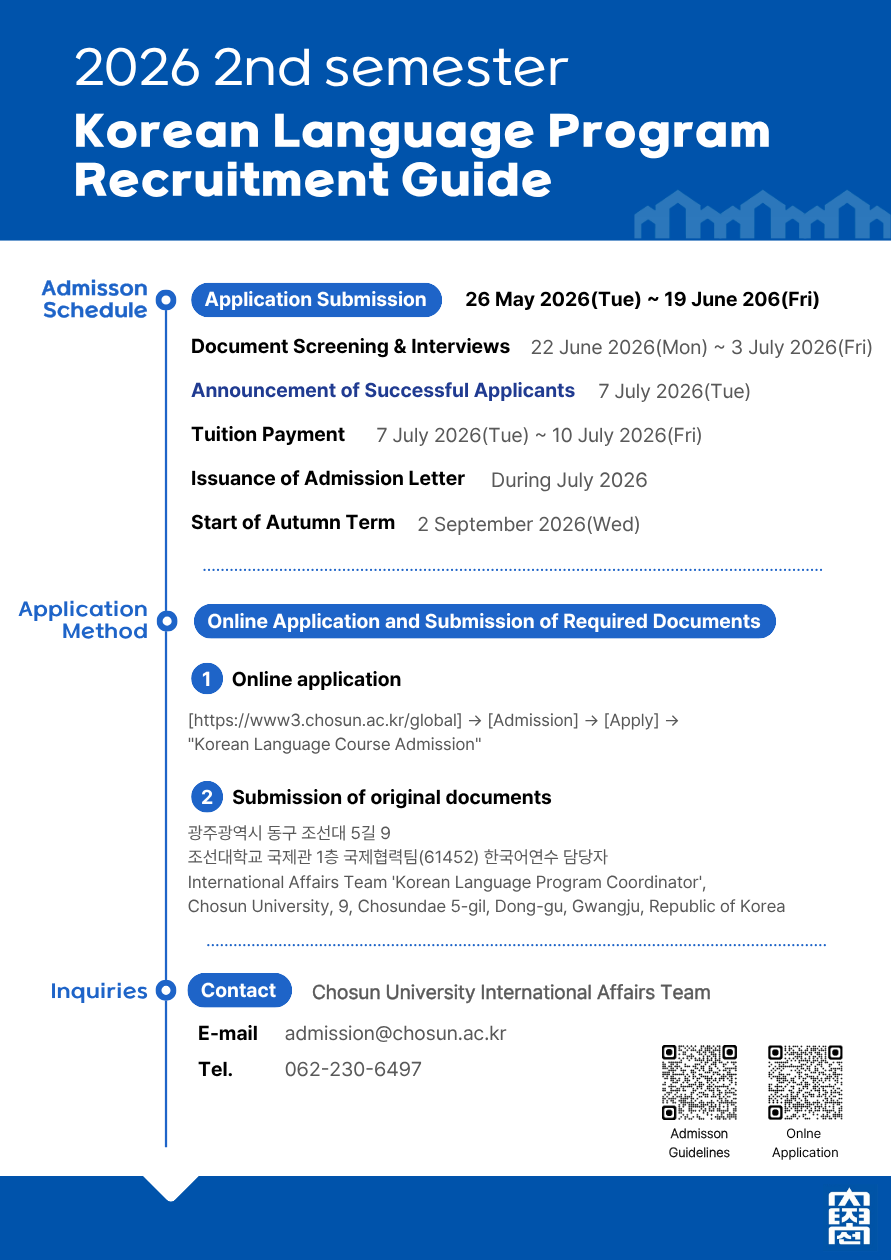 Admission Guidelines for the 2026 Fall Semester Korean Language Program