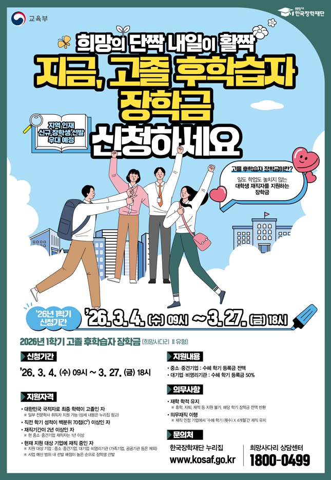 [장학금 접수] [기간연장]2026-1 고졸 후학습자(희망사다리 Ⅱ유형) 장학금 신청 안내