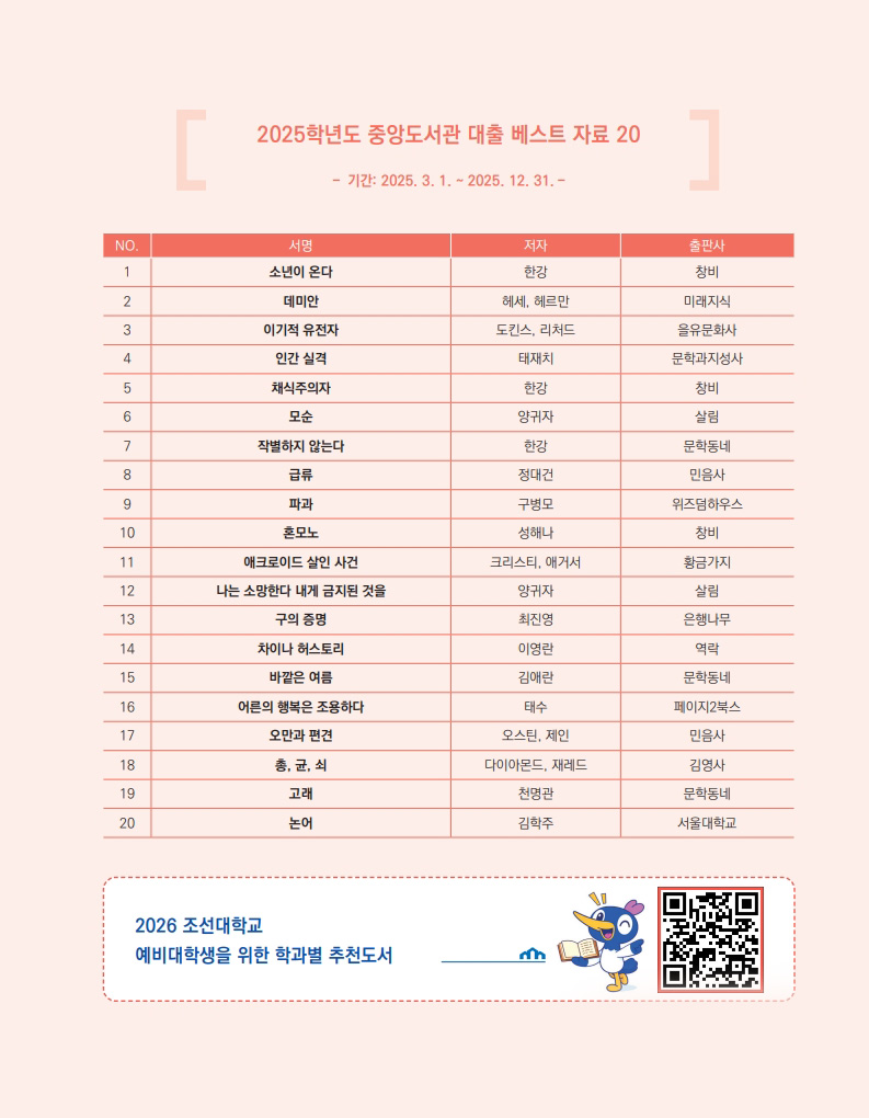 2025학년도 중앙도서관 대출 베스트 자료 20